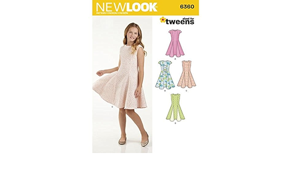 New Look Patterns 6360 S0458 Girls Sized For Tweens Dress A 8 10 12 14 16 Arts Crafts Sewing Amazon Com